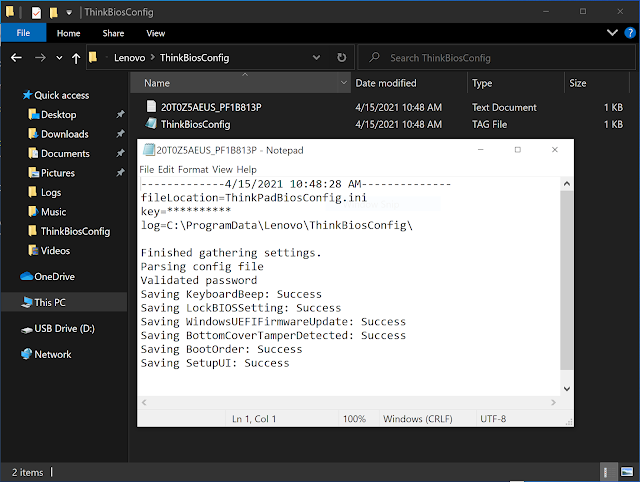 Word: The $arg variable is crucial as this holds the file and password switches. You will want to interchange ThinkPadBiosConfig.ini to no matter you named your .ini file. Exchange secretkey to the encrypting key you specified in the course of the seize course of.