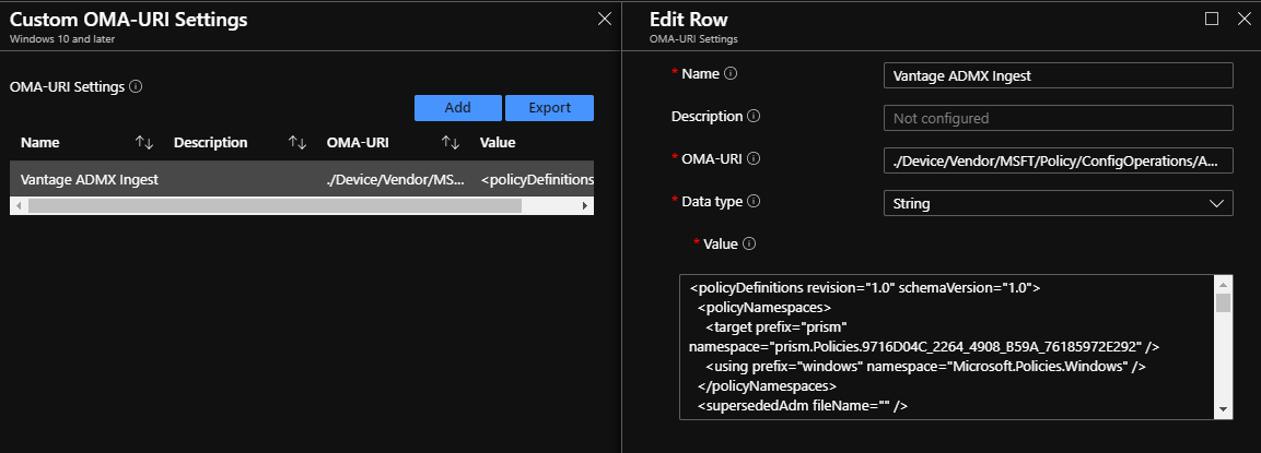 Ingest the Vantage ADMX file