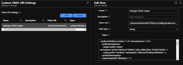 You'll be able to both add extra OMA-URI Settings to the ADMX Ingest coverage above or create a separate coverage with these settings.