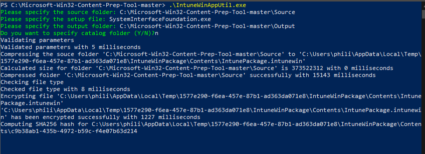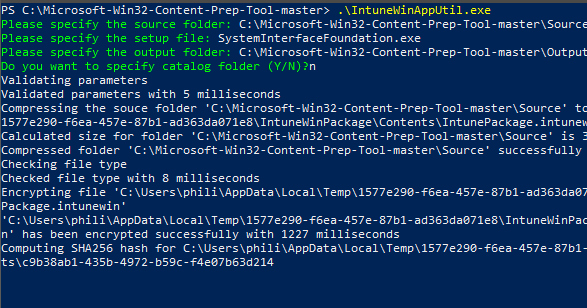 As soon as completed, a SystemInterfaceFoundation.intunewin file shall be created within the output listing.