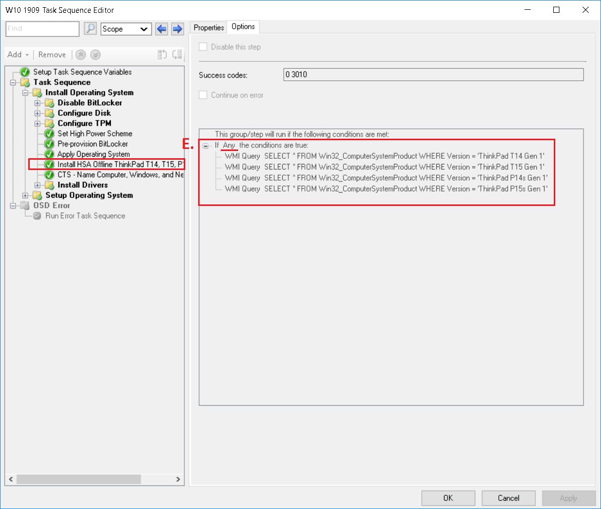 For MEM/SCCM and MDT implementations, we’re offering the next steering for the objects wanted to efficiently deploying Lenovo units.  Every implementation has steering on WinPE Elective Elements Necessities, the package deal to convey the content material to the system, and the Job Sequence activity data to carry out the set up.