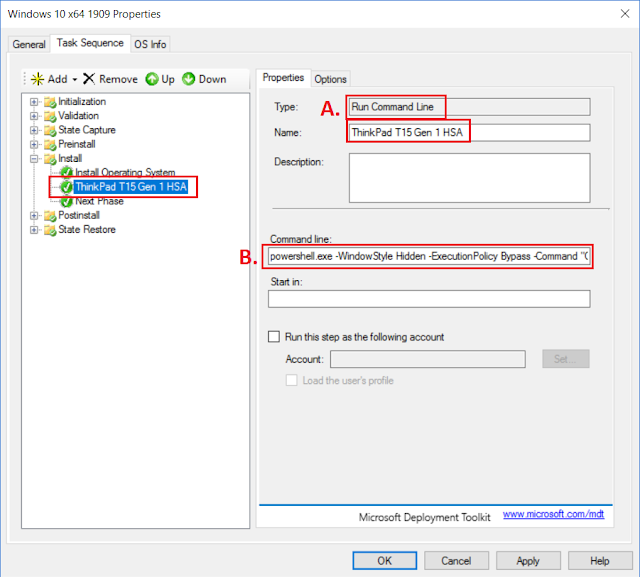 1. Within the Job Sequence, after the Apply Working System activity within the Set up section, however earlier than the Restart Pc activity within the PostInstall section, add a Run Command Line activity and provides it a reputation.