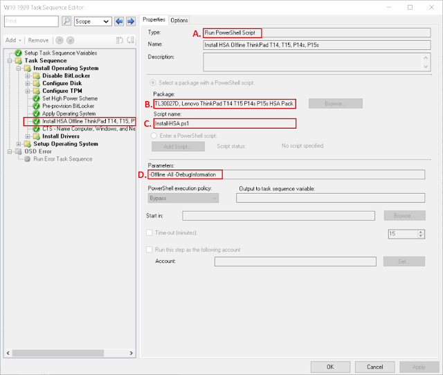 powershell.exe -WindowStyle Hidden -ExecutionPolicy Bypass -Command “Copy-Merchandise ‘%DeployRootpercentApplications<ApplicationFolderNameHere>’ -Vacation spot %OSDiskpercentOSDTemp -Recurse; %OSDiskpercentOSDTempInstall-HSA.ps1 -OFFLINE -ALL -DEBUGINFORMATION; Take away-Merchandise %OSDiskpercentOSDTemp -Recurse -Power”