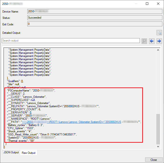 As beforehand talked about, you would additionally run the “odometer.ps1” utilizing the very helpful Run Scripts function within the Config Supervisor console.  With that it is possible for you to to get direct suggestions from the machine within the console as proven beneath: